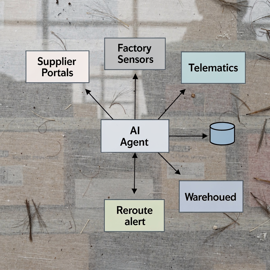 Belangrijke componenten zijn data lakes, API’s naar ERP/WMS/TMS, edge compute, ML-modellen en robotics-middleware. Veilige integraties en modelmonitoring maken de stack compleet voor betrouwbare agentoperaties.
